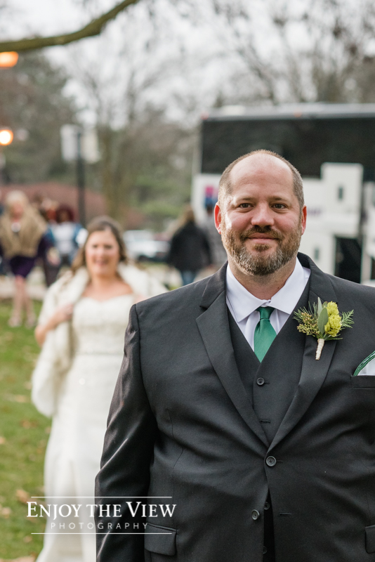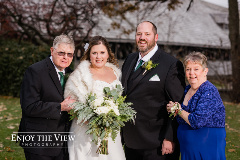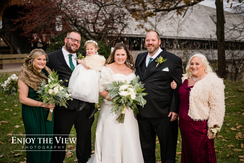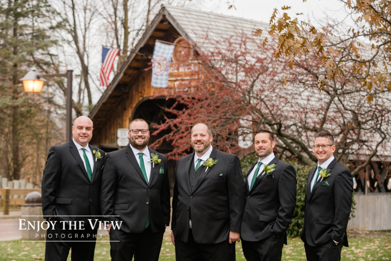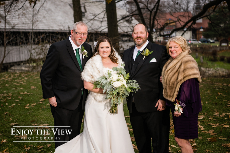 The bridal party prepped for the wedding in hotel rooms at the Bavarian Inn Lodge. Erin & Gary opted to do a first look & portraits with their families and wedding party prior to their ceremony with the Covered Bridge as the backdrop. Then it was off to The River View at the Frankenumth Brewery for the ceremony & reception. Can we just say that we love The River View?! It is such a beautiful space and the service & food are excellent.