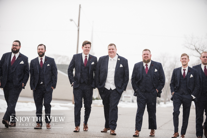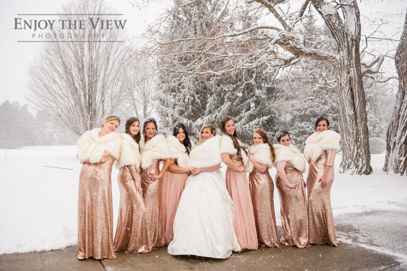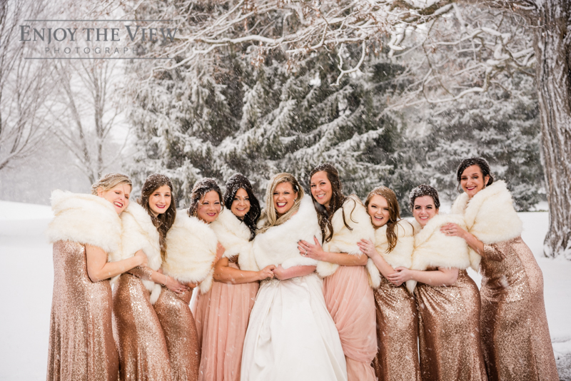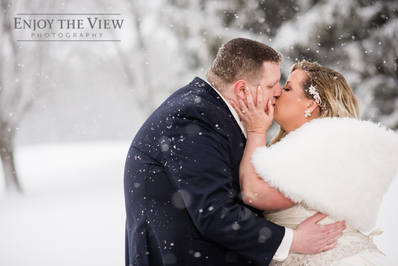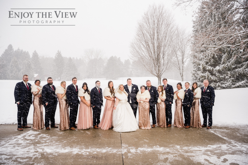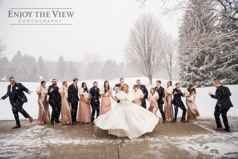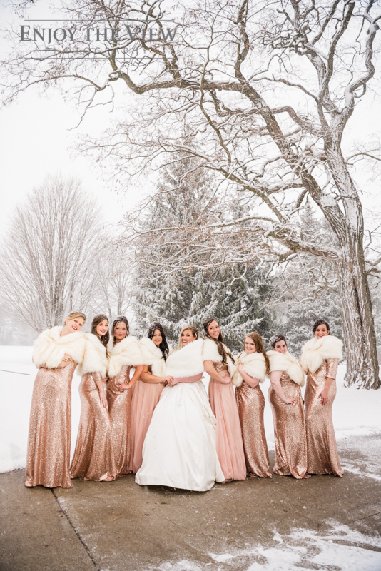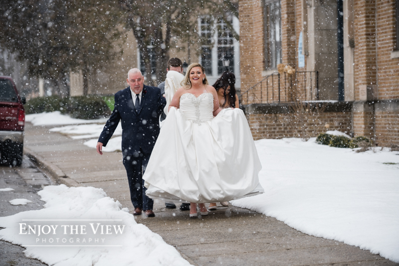 When you live in Michigan and plan your February wedding more than likely you are hoping for some snow on the ground. In Chelius and Andrew’s case not only did it snow right before their big day but throughout as well! A bridesmaid said it best when she peeked out the window and exclaimed “they’re like giant snow-globe snowflakes!”