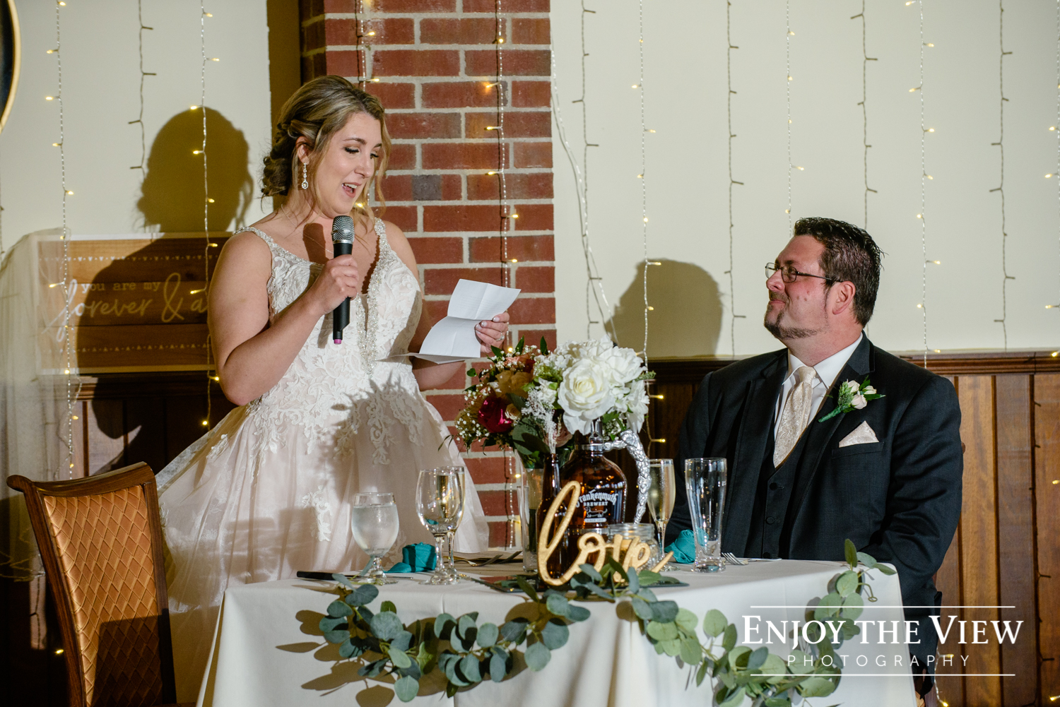 The ceremony and reception were both held at The River View at the Frankenmuth Brewery, one of our absolute favorite local wedding venues. They enjoyed a wonderful dinner and danced the night away to celebrate!
