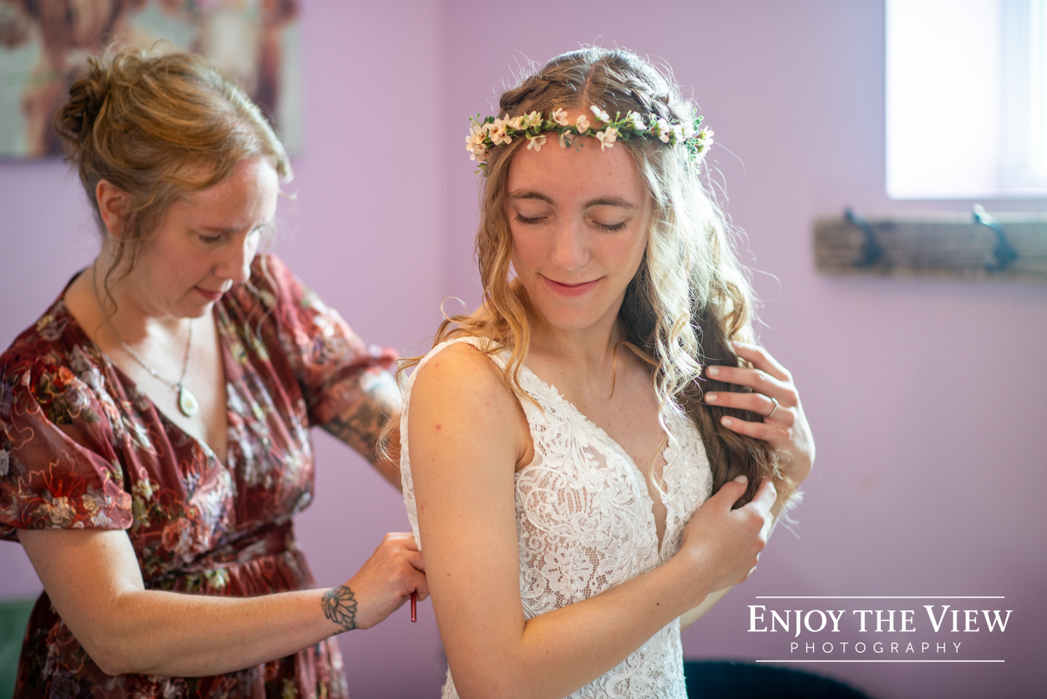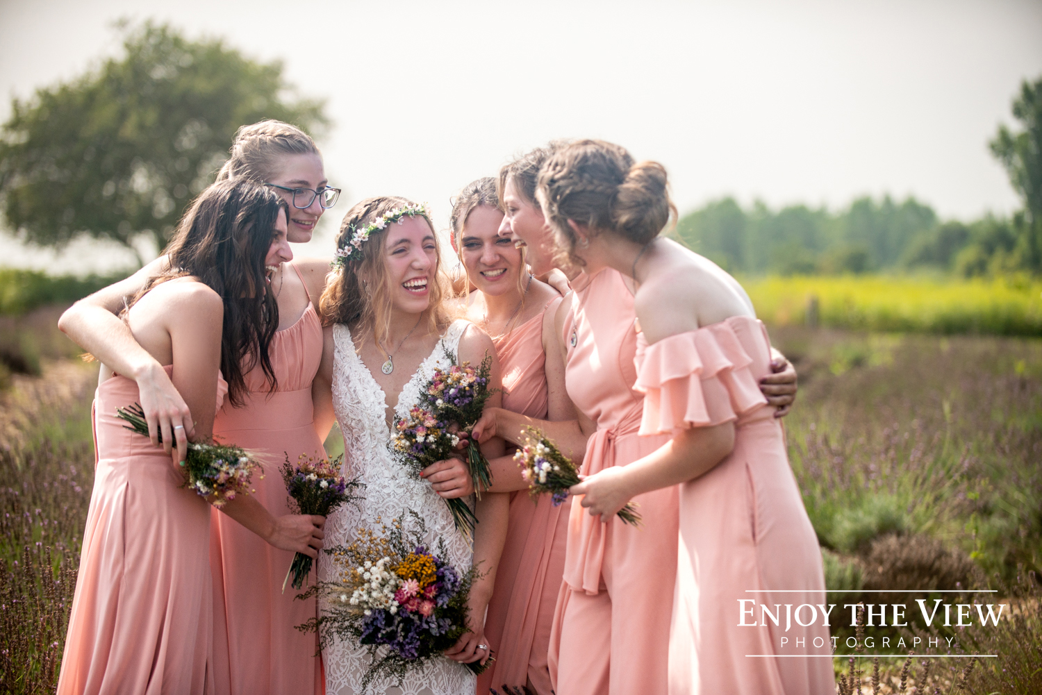 Lavender Shores Farm hosted their entire event. Their ceremony was in front of the lavender fields (the whole day smelled amazing) and the reception was held in the beautifully rustic barn. There were so many great spots for photos and the bride, groom, both of their families, and wedding party were simply full of joy throughout!