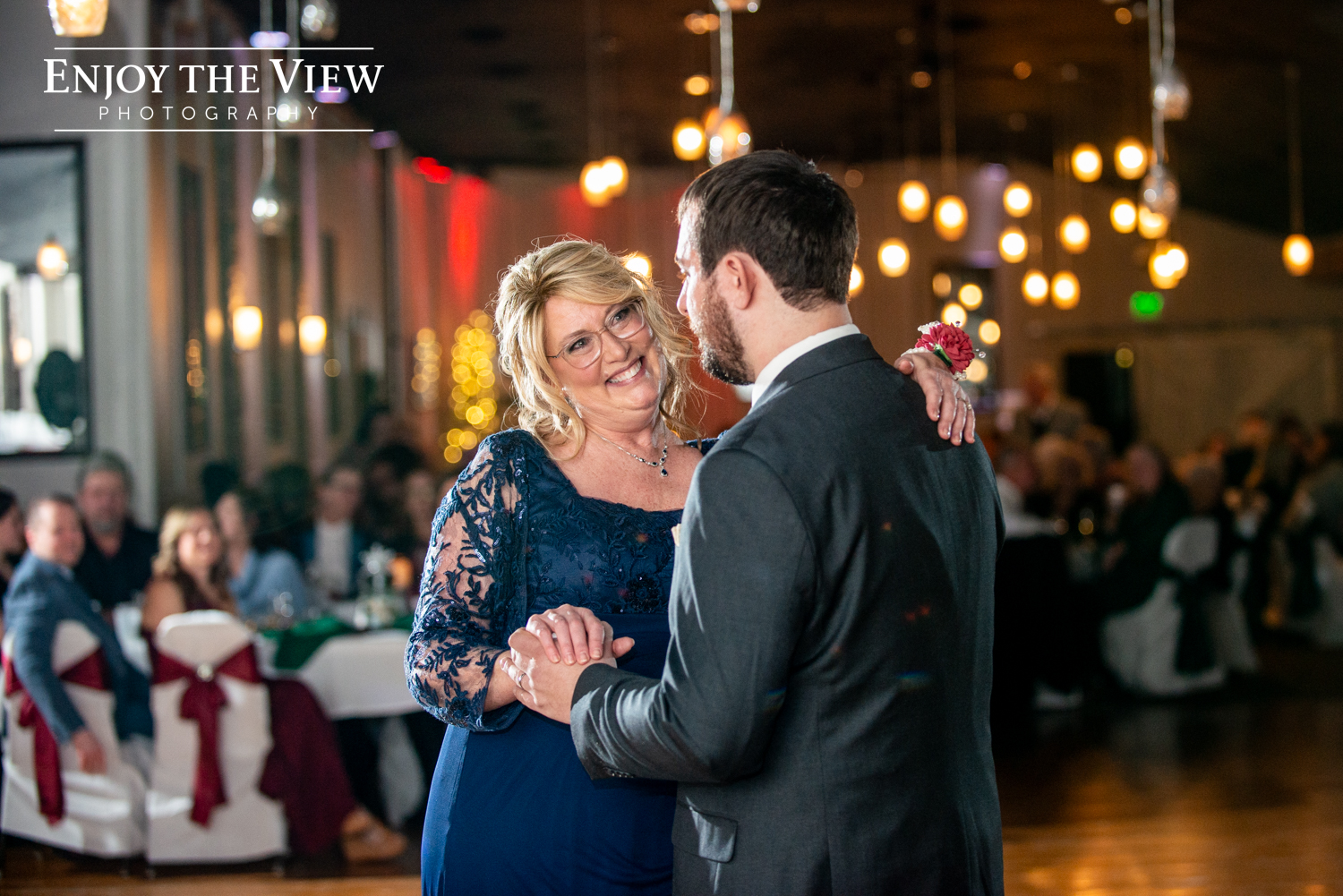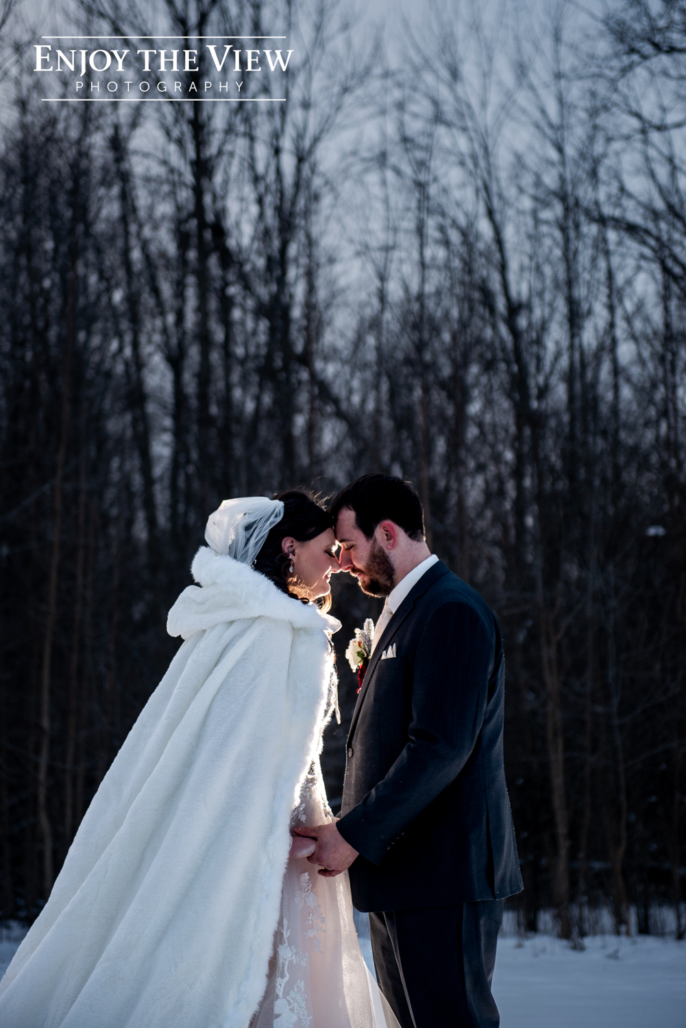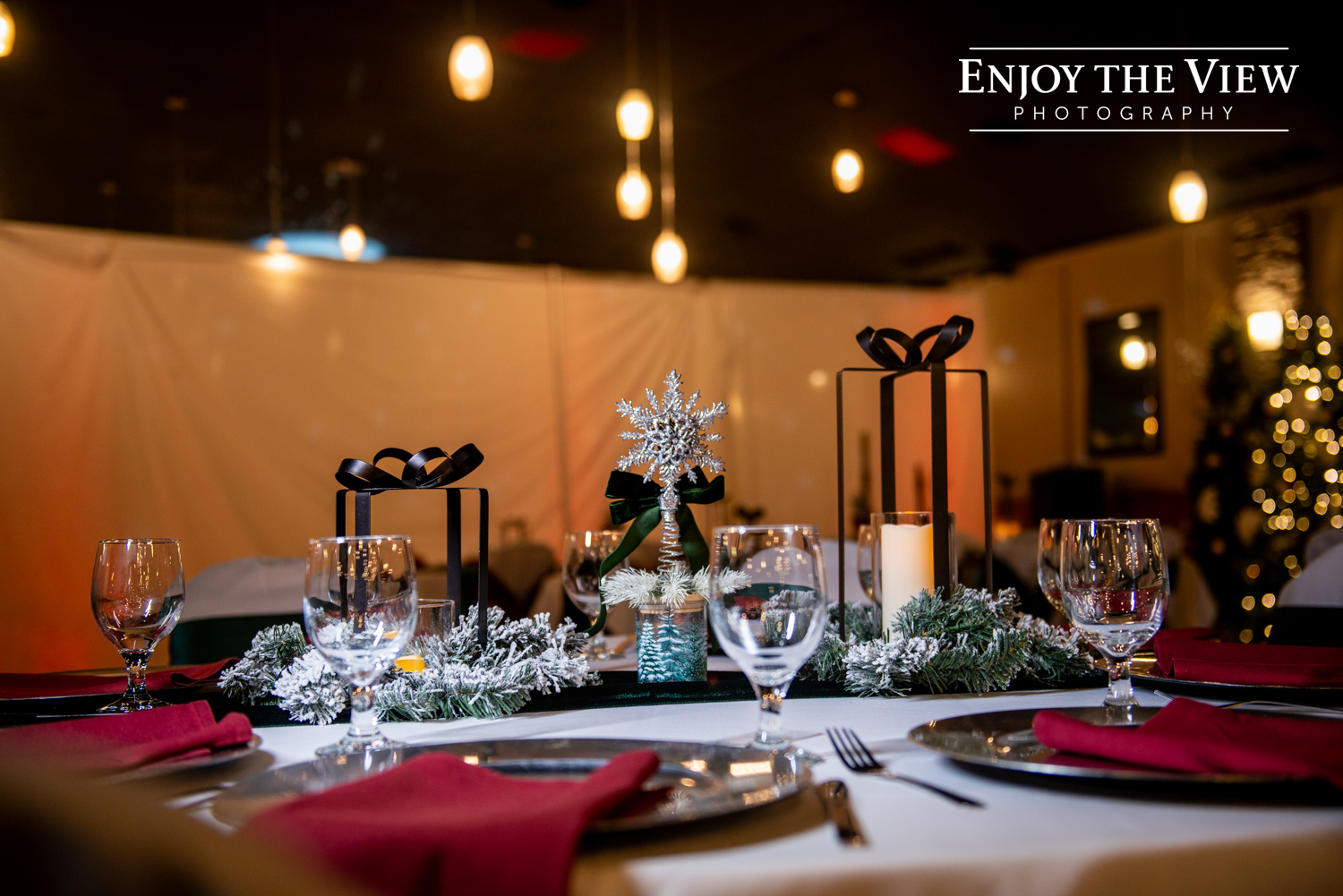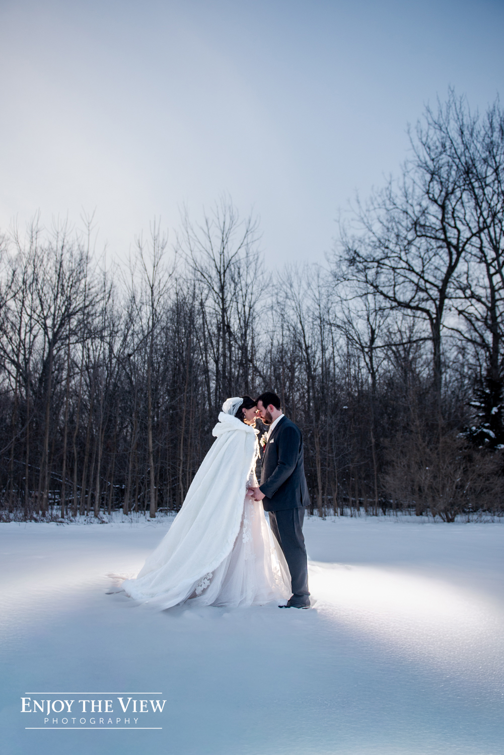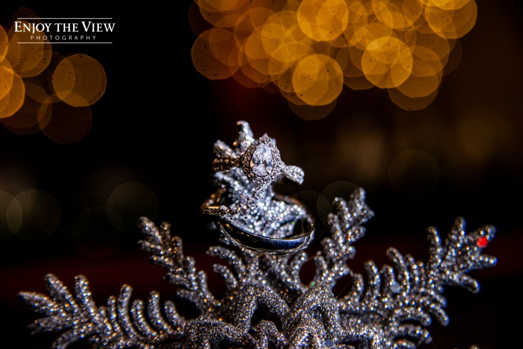 Kaylee and Kevin were married in January at Forest Edge Banquet Center on her great-grandparents’ anniversary. Kaylee did such an amazing job with the decor – every surface was covered with beautiful winter sparkle, from snowflakes to pine trees to a snow globe backdrop for photos.
