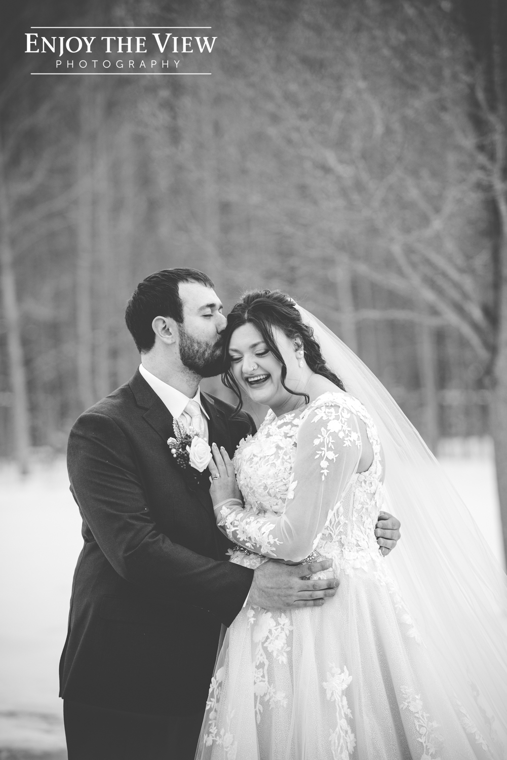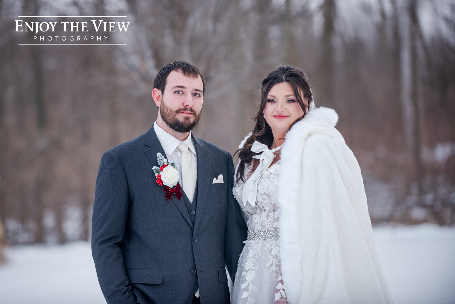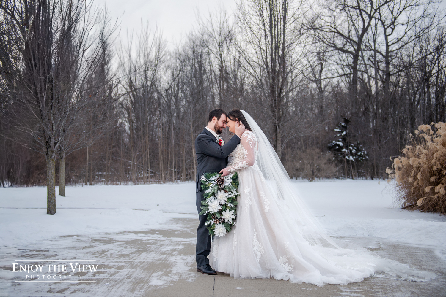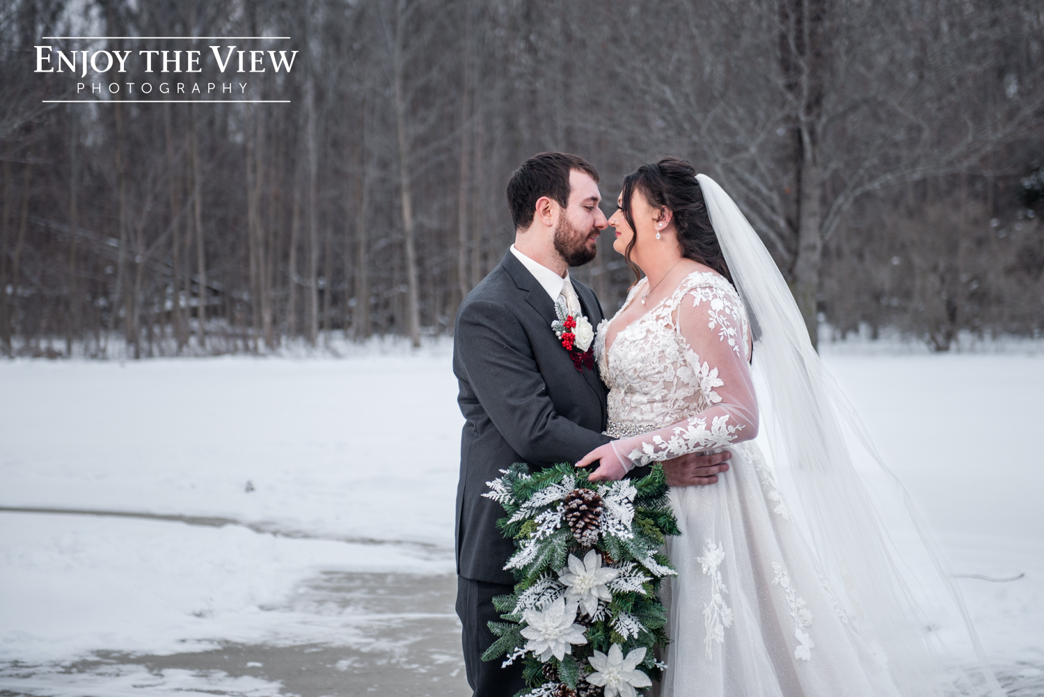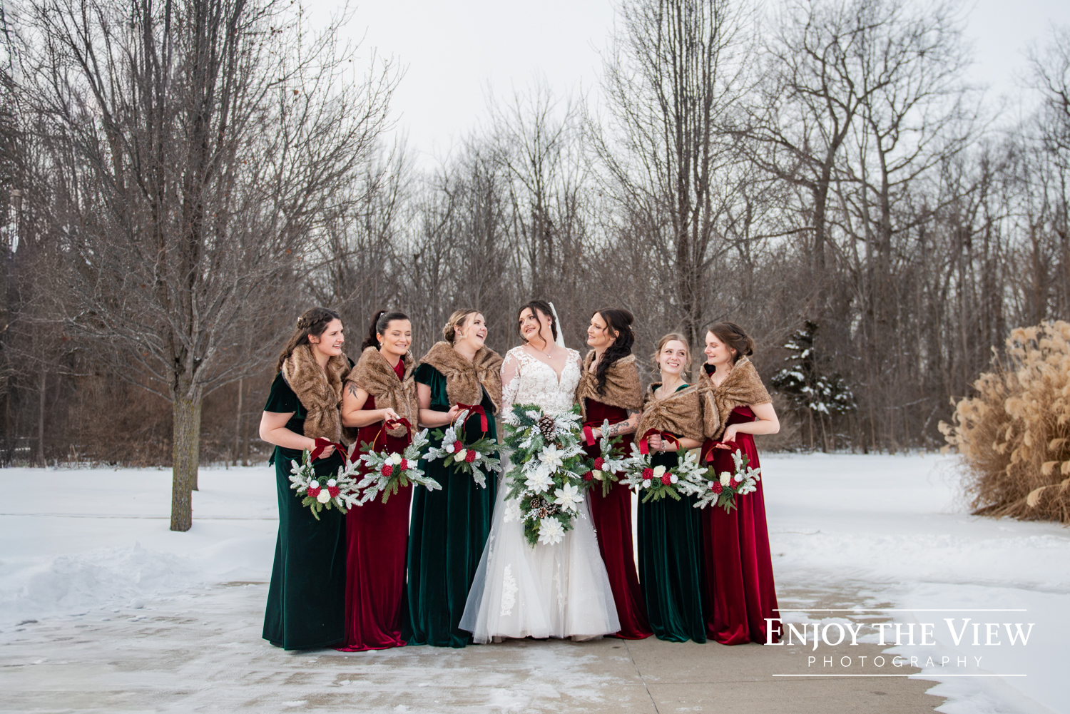 Kaylee and Kevin and their wedding party braved the cold temps (it was about 15 degrees that day!) for portraits before and after the ceremony and we’re so thrilled with how they turned out. We love a beautiful snowy background for photos!