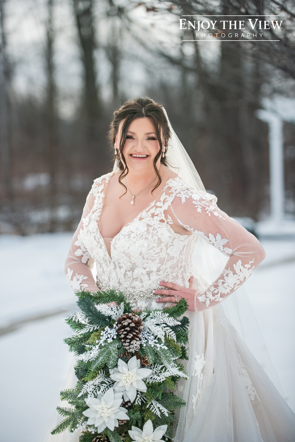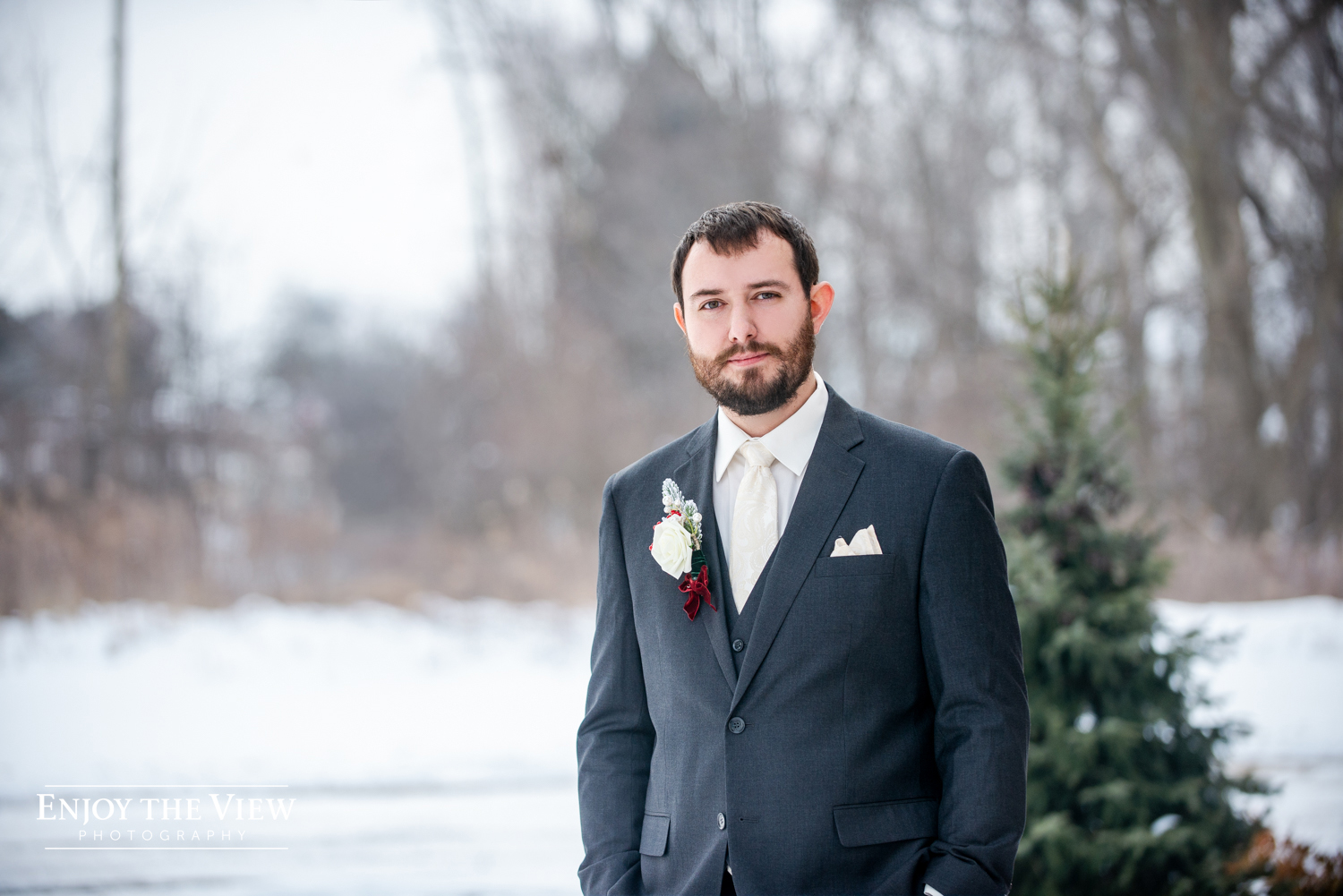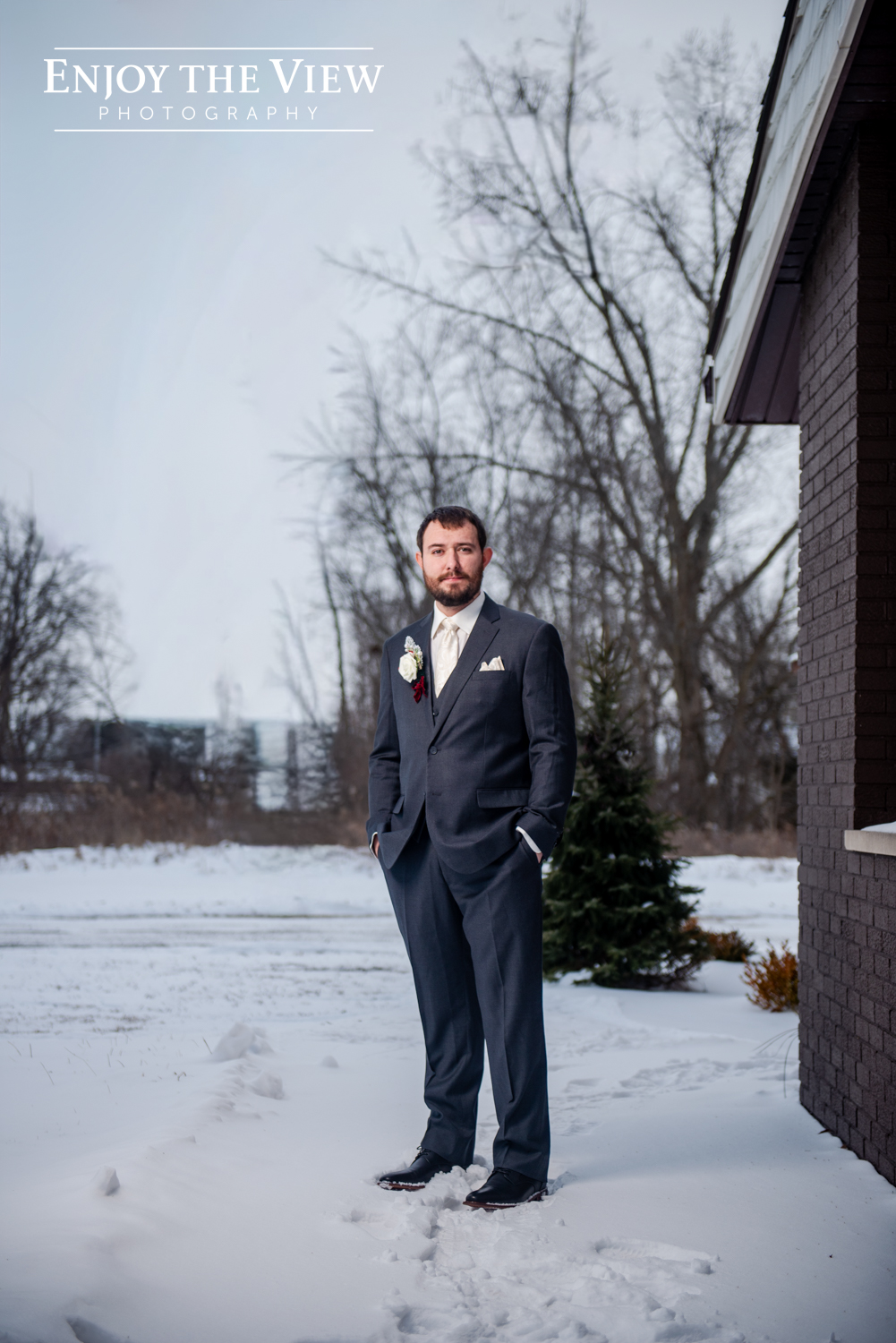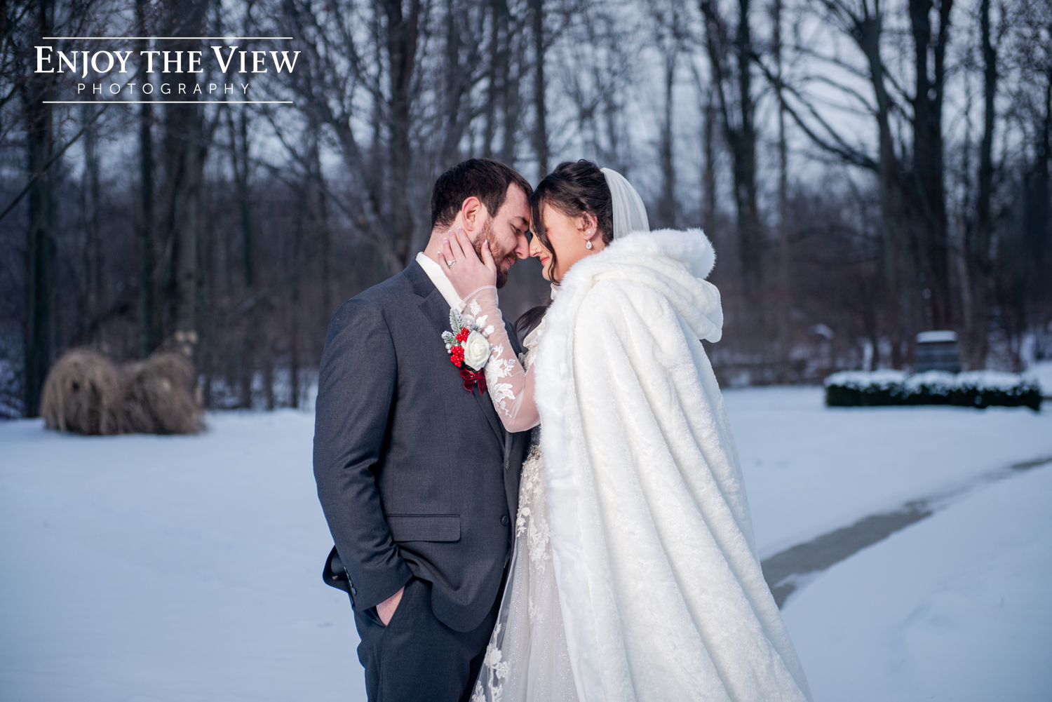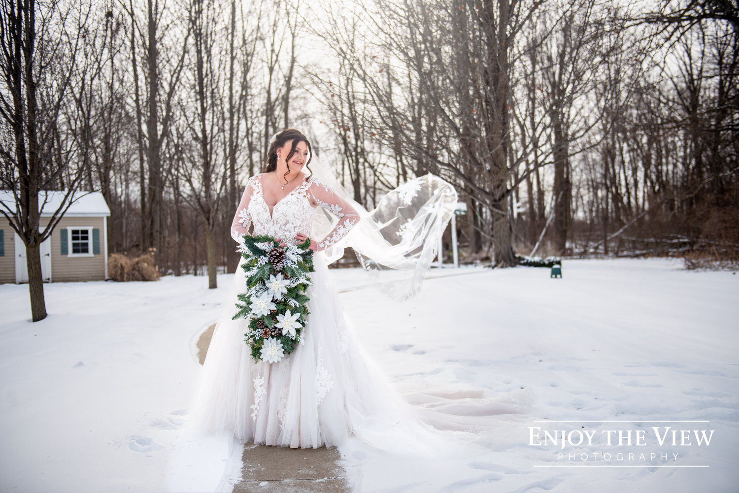 Kaylee and Kevin and their wedding party braved the cold temps (it was about 15 degrees that day!) for portraits before and after the ceremony and we’re so thrilled with how they turned out. We love a beautiful snowy background for photos!